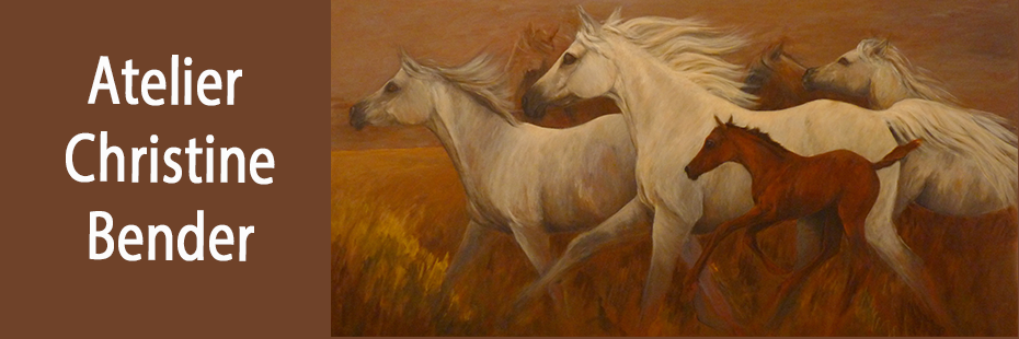 Pferde sind die Lebewesen, in deren Seele sich die Malerin Christine Bender am besten hinein fühlen kann. Und sie lässt den Bildbetrachter an Ihrem empfindsamen Zugang zu diesem mit dem Menschen symbiotisch verbundenen Geschöpf teilhaben.